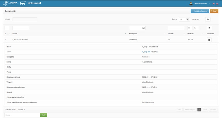 - čítanie a editácia dokumentov na základe užívateľských práv.